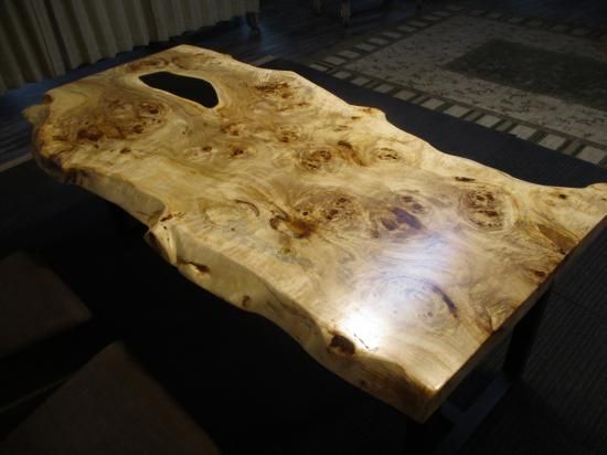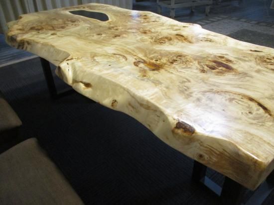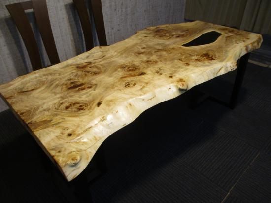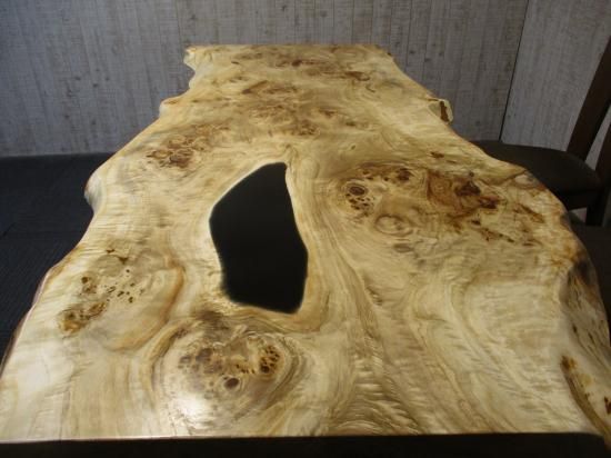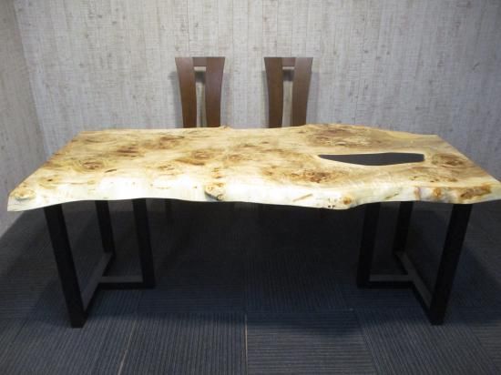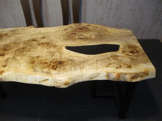 ポプラの一枚板無垢のテーブルです。ポプラ特有のアイアンバード木目がびっしり決まっています。穴があった部分はレジンを流し込み綺麗に仕上げています。最近白色系統のテーブルが人気です。両面ご使用になれます。長さはご希望のサイズにカットできます。