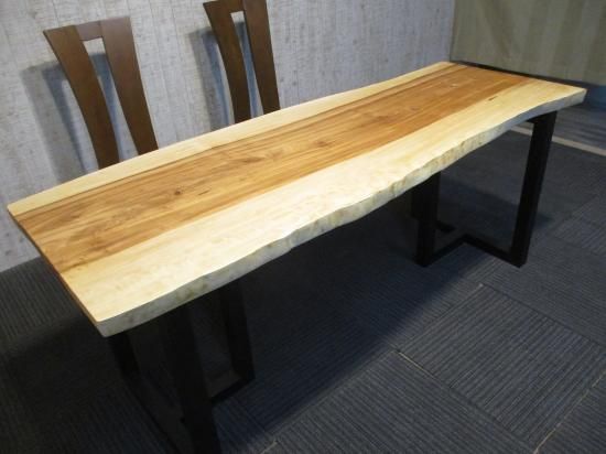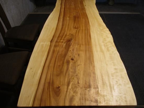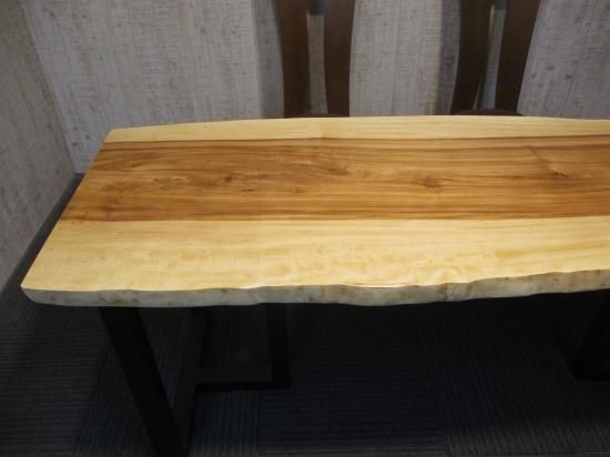栃の一枚板無垢のテーブルです。人気の栃です。栃の生き生きした模様が素敵です。